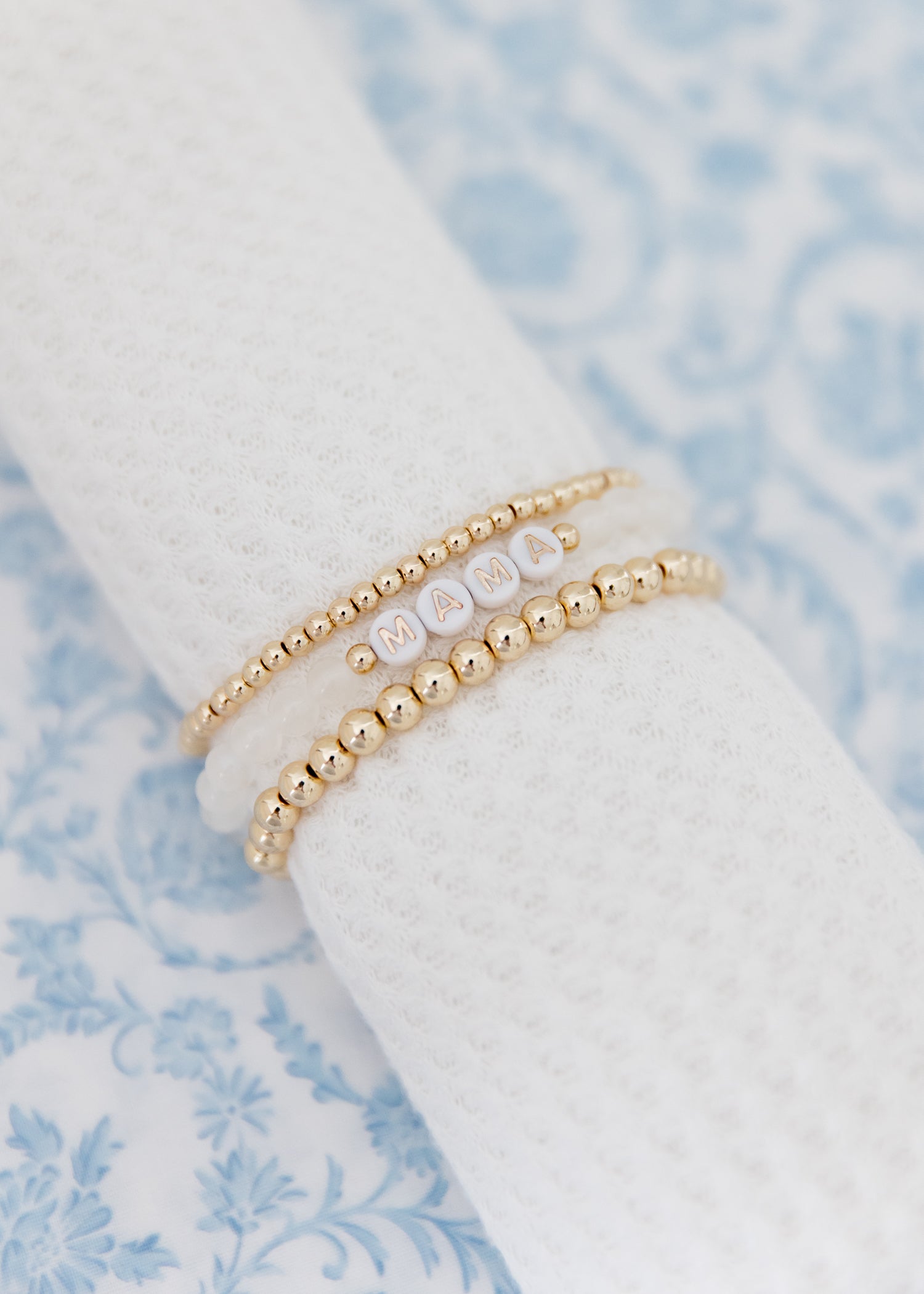 All of our bracelets are made with high quality strong elastic string, but CAN stretch out if not rolled off properly. When removing your bracelets, please gently roll them off your hand. The beads should have constant contact with your skin as you take them off, avoid stretching or pulling the bracelet away from your wrist when you remove them. Also, roll off one bracelet at a time. These bracelets are designed to be worn all day everyday, and and constantly taking them on and off should be minimized as much as possible. This will help them to maintain their correct size and avoid them getting stretched out!