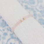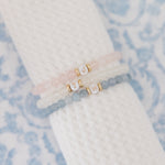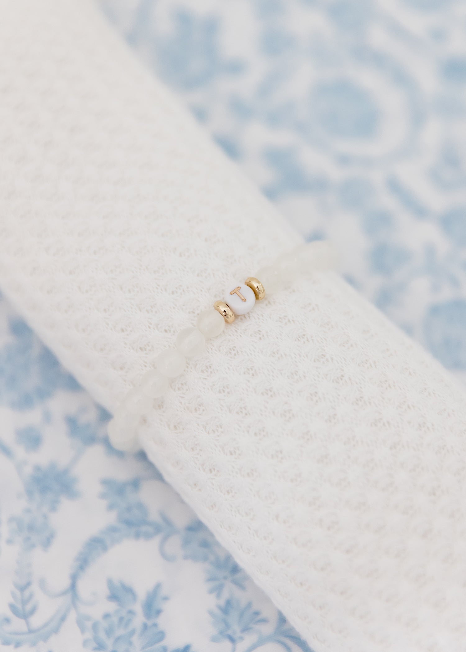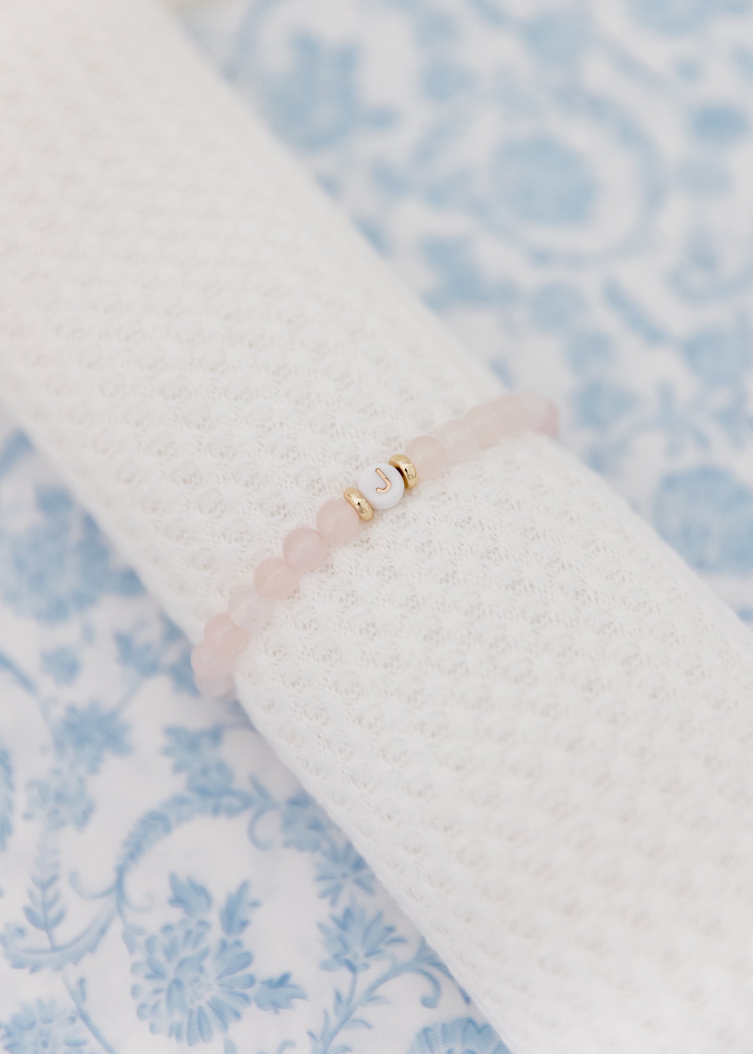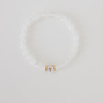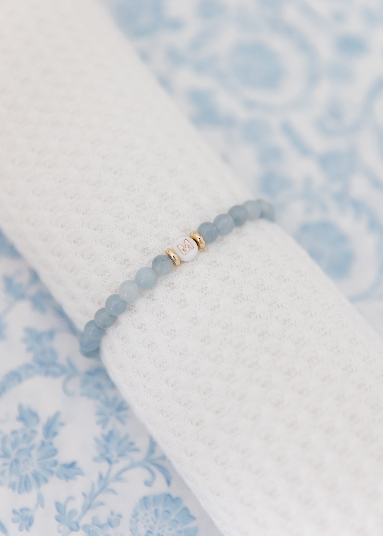 the Initial is the perfect way to have an understated yet custom bracelet. Handmade with 6mm gemstones, 14k gold filled beads, and acrylic letters. Made with stretchy string so it’s easy to roll on and off. Please leave the letter you'd like us to use in the "NOTES" section during checkout.
